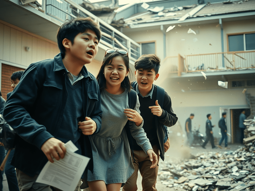 Ordinarily, the teachers at the school would have made sure that the students under their care remained in the school grounds until collected by an adult, but on this occasion many were distracted by thoughts of their own loved ones with whom they had yet to make contact following the huge earthquake of twenty minutes ago.